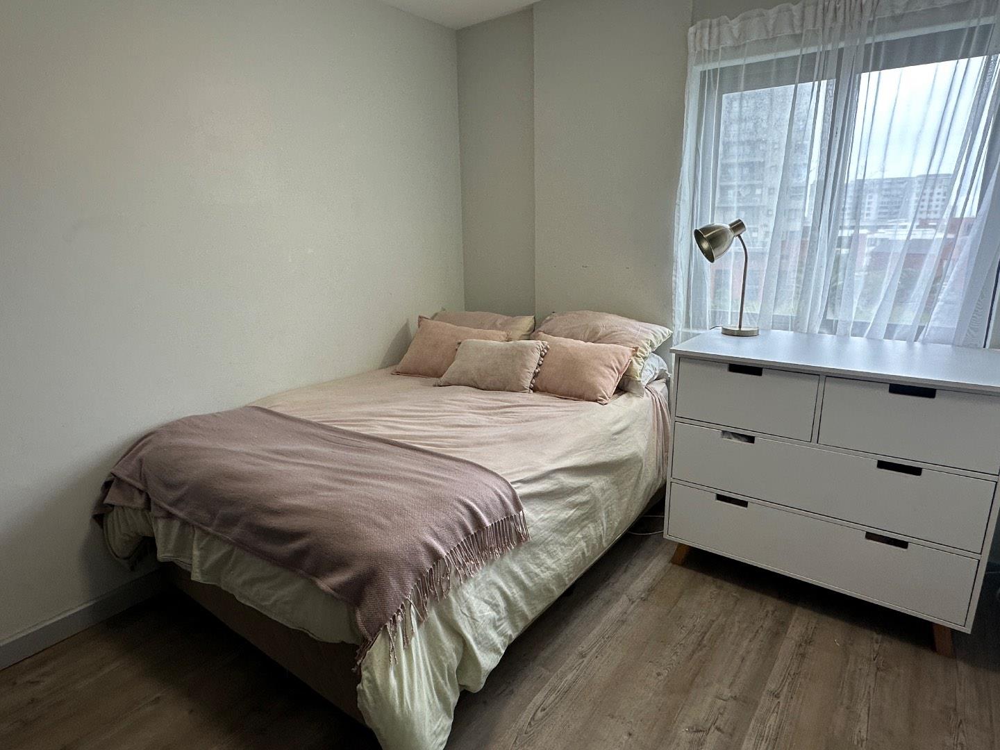 The apartment boasts two generously sized bedrooms, each equipped with built-in cupboards for ample storage space. The main bedroom includes an en-suite bathroom, offering privacy and convenience.