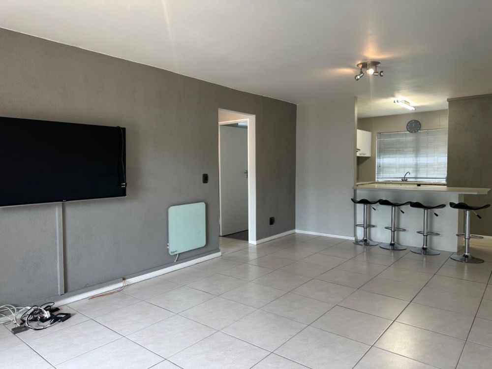 Step outside through the sliding door to discover a covered patio complete with a built-in braai, perfect for alfresco dining and outdoor gatherings. The generously sized main bedroom features built-in cupboards and a sliding door leading to a beautifully landscaped garden, offering a tranquil retreat.