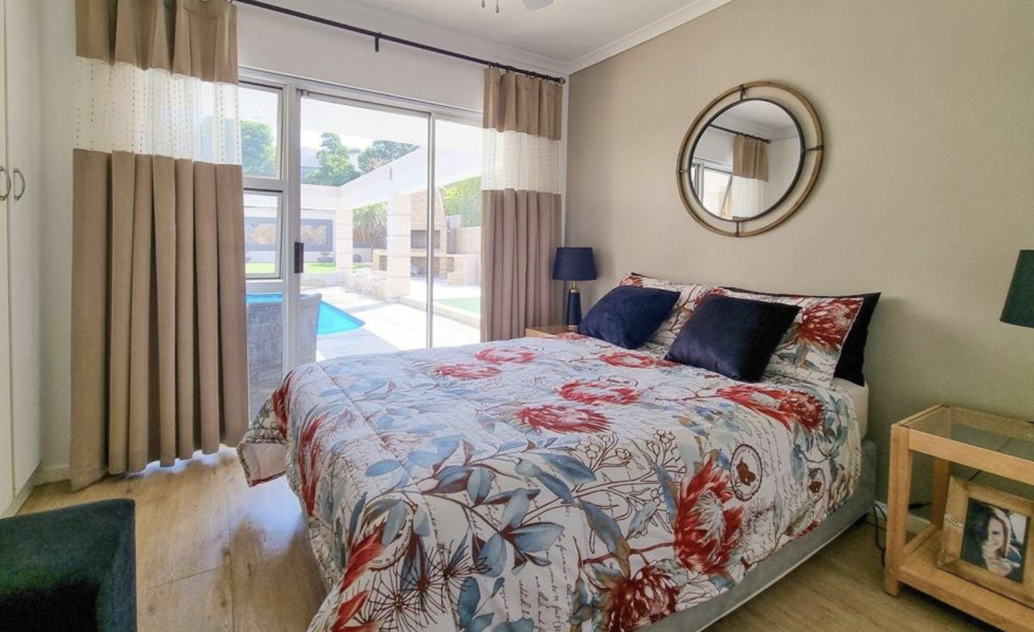 Remaining three bedrooms: vinyl flooring, with the second and third also offering direct outdoor access to the patio and pool.